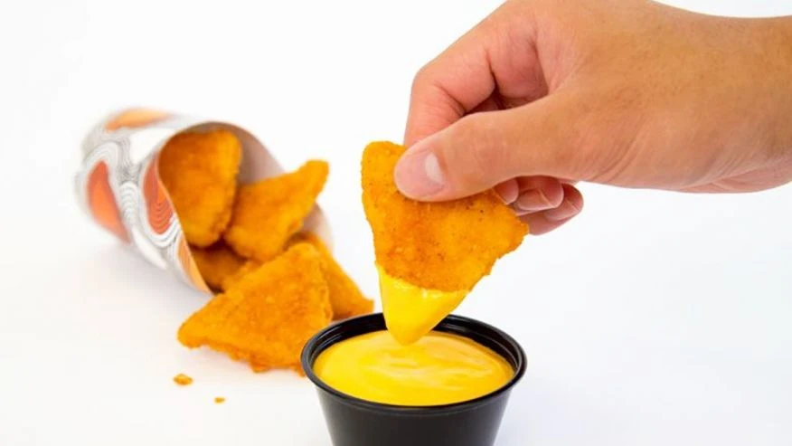 The Naked Chicken Chips were a side menu item at Taco Bell which were first introduced on May 11, 2017. It consists of triangular shaped chicken "chips" seasoned with a blend of Mexican spices and served with a cup of nacho cheese for dipping.